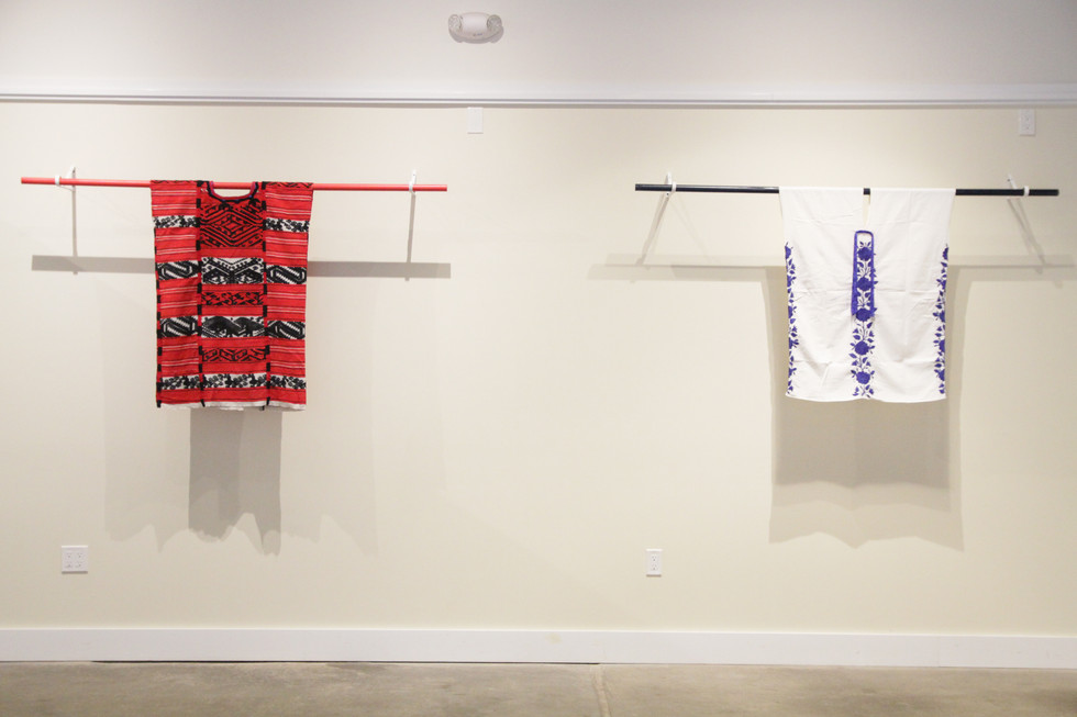 The art installation for the fabrics were designed by student curators at the Trolley Barn. According to gallery manager Jamie Ransome, the student curators carefully crafted hanging mechanisms in an assortment of colors to exhibit the materials without mannequins for elevation.